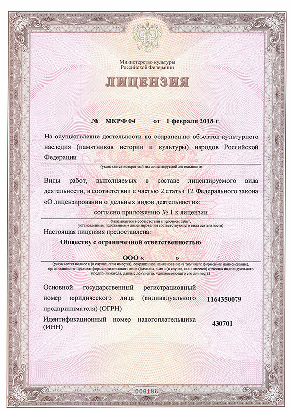Этап 1: обеспечить компанию квалифицированным персоналом. В штате предприятия обязательно должны иметься реставраторы (инженер, архитектор, инженер-технолог и исполнитель реставрационных работ) со стажем работы от 5 лет и прохождением курсов по повышению квалификации каждые 5 лет. В противном случае в получении лицензии будет отказано.