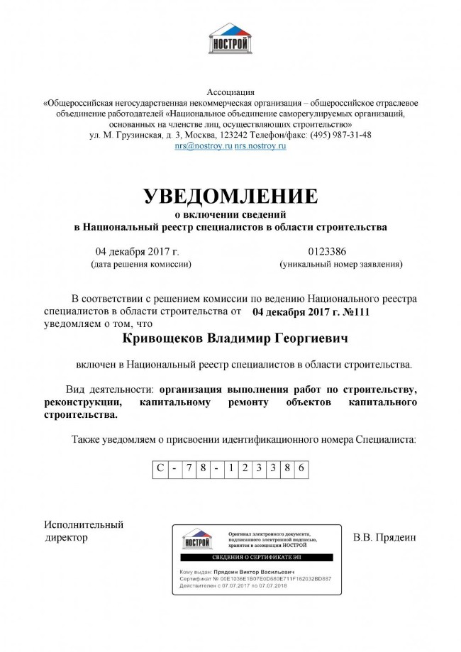 С 01.07.2017г. вступил в силу закон,согласно Градостроительному кодексу РФ, все строительные компании, желающие получать крупные подряды, обязаны иметь членство в СРО и подтвердить квалификацию своих работников в НРС— Национальном реестре специалистов.